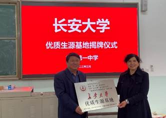 2023年3月26日至4月3日长安大学taptap点点体育简林莎教授、陈占明副教授、姚秋霞副教授一行赴天津市武清区、河东区、滨海新区和宝坻区开展招生宣传工作,在杨村一中、杨村三中、大港油田实验中学、天津市第七中学和宝坻区第一中学举办优质生源基地授牌仪式。本轮授牌仪式得到所在高中校领导的高度重视,长安大学一行从学校办学历史、办学层次、办学定位和办学特色等维度向与会校领导介绍了长安大学,对于提高我校在天津片区的知名度和影响力具有重要意义。