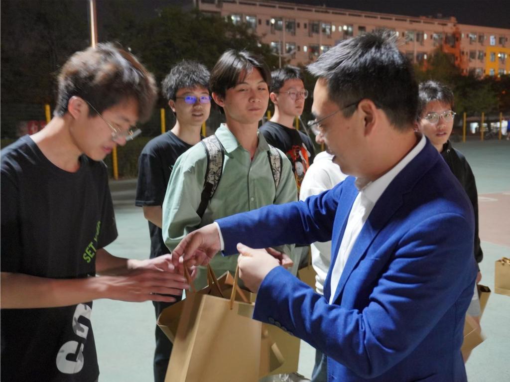 姬国斌、倪凤英向运动员代表们发放慰问品,并与同学们一一交流,为大家加油打气。一份份慰问品,从老师手里递到同学们手中,这不仅是一份心意的传递,更是学院凝聚力的体现。