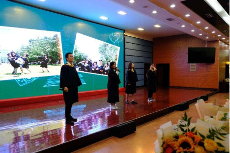 典礼最后,为感谢师恩,毕业生为教师代表献花,表达敬意和感激之情。献花结束,全程师生同唱《起风了》,2023届毕业生即将扬帆远航、开启人生的新篇章。