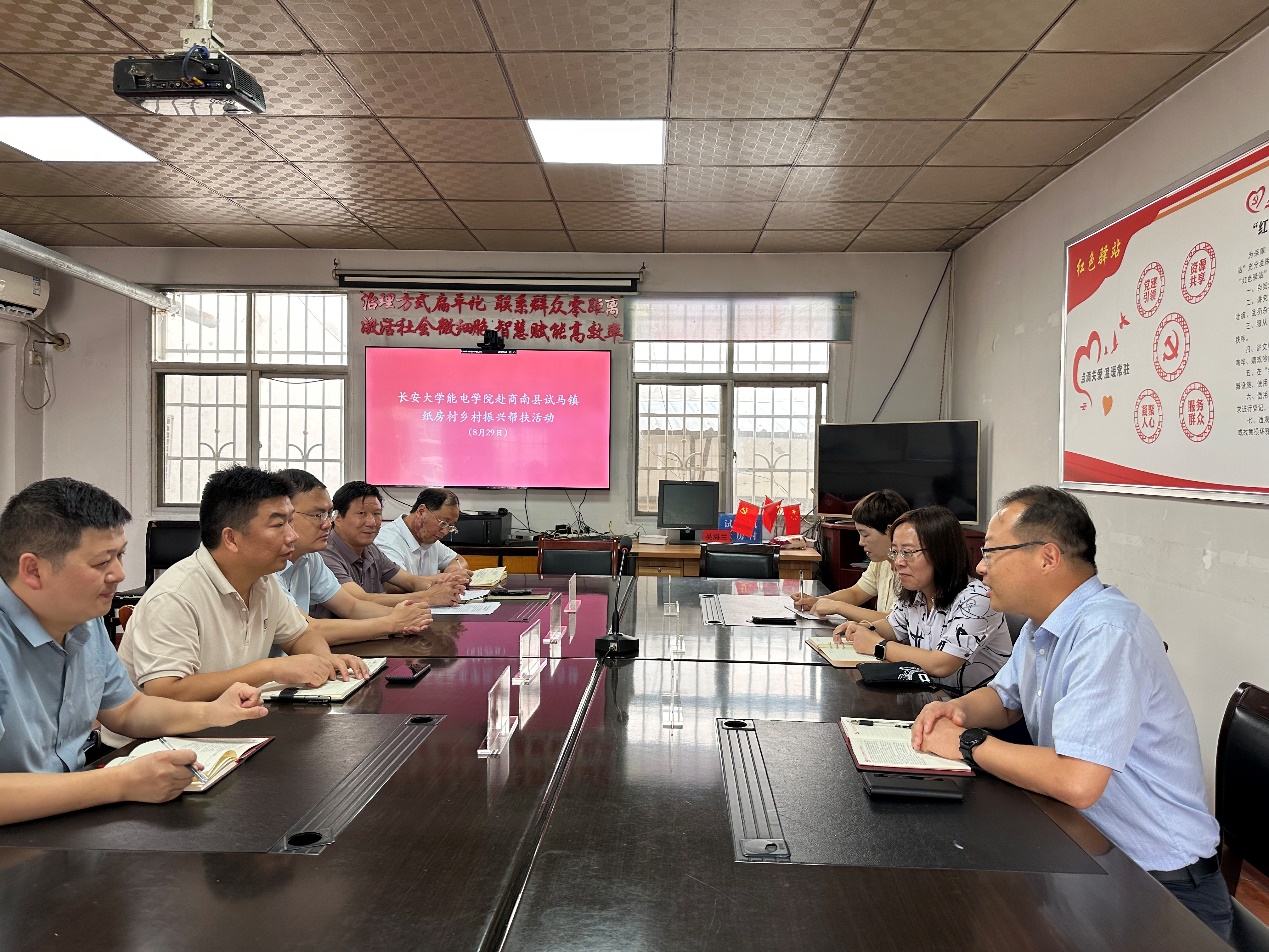 8月28日-29日,taptap点点体育官网党委书记王艳带队,一行7人赴商南县试马镇纸房村开展乡村振兴帮扶工作暨党建结对帮扶授牌仪式。商南县副县长马飞、试马镇人民政府镇长陈涛、县委办副主任黄山林、试马镇副镇长姜方泽、县委办派驻纸房村第一书记田先锋、纸房村党支部书记兼主任凌怡海参加活动。