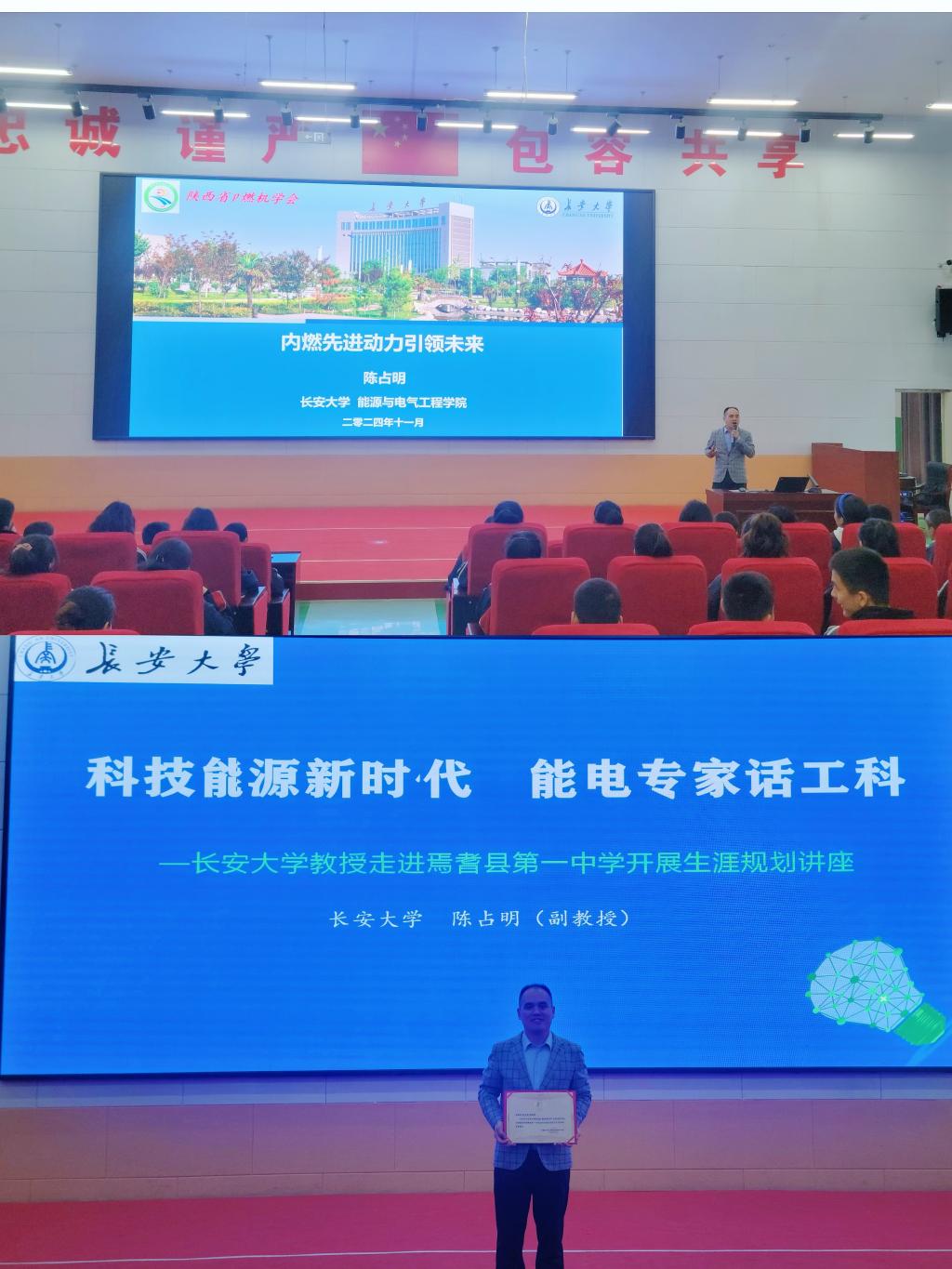 2024年11月29日,taptap点点体育官网陈占明副教授赴新疆焉耆中学开展以“内燃先进动力引领未来”为主题的科普讲座。