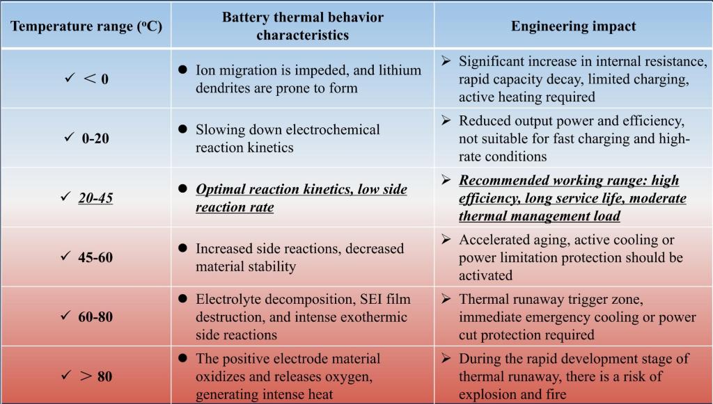 锂离子电池在不同温度范围内的热行为和工程影响