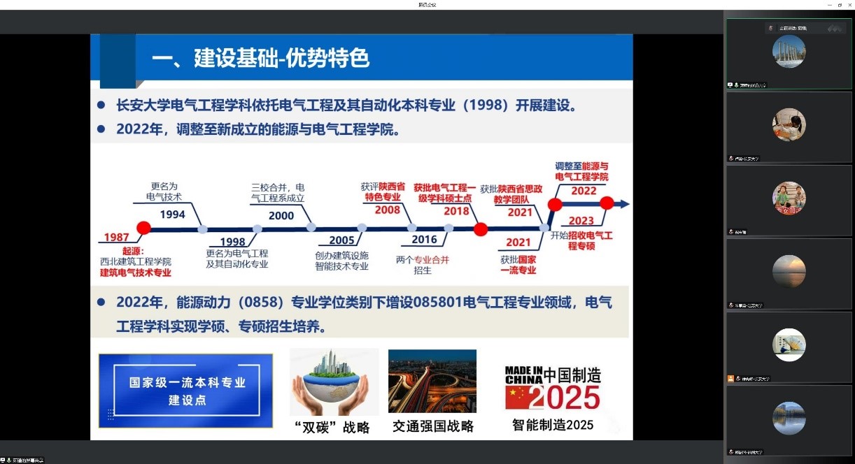 2022年12月18日下午,taptap点点体育官网组织召开长安大学第二轮“双一流”建设电气工程学科建设方案专家论证会,本次论证会采用了线上视频会议形式。专家组由西安交通大学祝令瑜教授、福州大学邵振国教授、郑州大学蒋建东教授、西安理工大学贾嵘教授和江苏大学朱孝勇教授等五位专家组成。taptap点点体育副院长段晨东教授、副院长茹锋教授及电气工程系相关教师参加了会议。