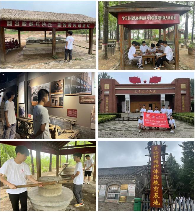 7月9日,队员们前往“四面红旗”纪念馆、焦裕禄精神教育体验基地,参观了焦裕禄与四地人民当年治沙用过的各类农具,阅读焦裕禄和人民们治理风沙时的一点一滴,并亲身体验当年人民治理风沙的方法。队员们了解到,“四面红旗”在焦裕禄到来前都是饱受风沙困扰的贫瘠之地;在焦裕禄精神的鼓舞下,几代人努力奋斗,换来的是今天的巨变:昔日的大风口赵垛楼、秦寨都已成为重要的产粮基地,双杨树、韩村则大力发展多元化产业经济,实现了脱贫致富。在实践基地的亲身劳作,队员们感受到兰考人民自创的治理风沙办法的智慧与高效,也体会到兰考人民的不易,并被焦裕禄的崇高品质和兰考人民“敢叫日月换新天”的精神所折服。