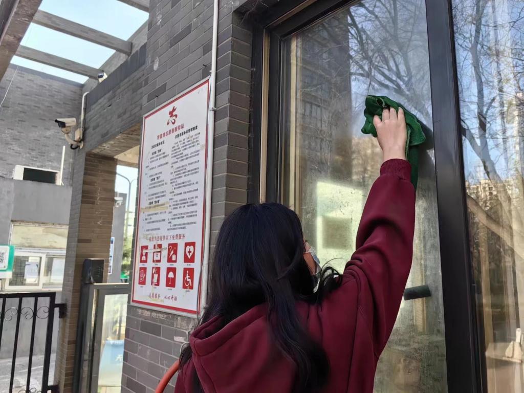 2023级能动1班走进社区,在长乐西苑小区开展了大学生社区志愿服务实践活动。活动中,同学们捡拾掉落垃圾、擦拭窗户、扫除灰尘等,获得了社区居民的一致称赞,弘扬了"奉献、友爱、互助、进步"的志愿服务精神。