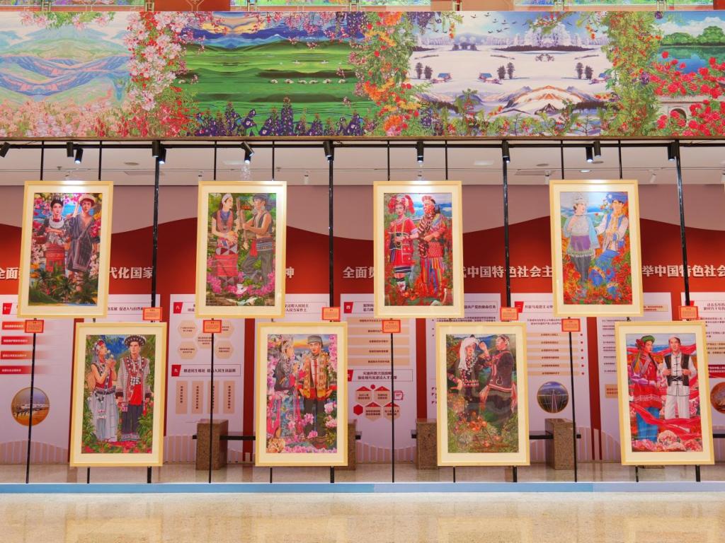 来到全国“民族团结进步教育基地”、中国规模最大的民族类博物馆——云南民族博物馆,首先映入眼帘的是“中华民族一家亲”56个民族风物长卷,长卷用数字手绘艺术全景呈现出新时代56个民族在绿水青山间的幸福生活,与馆藏56个民族服饰开展了一场插画艺术与传统服饰的对话。