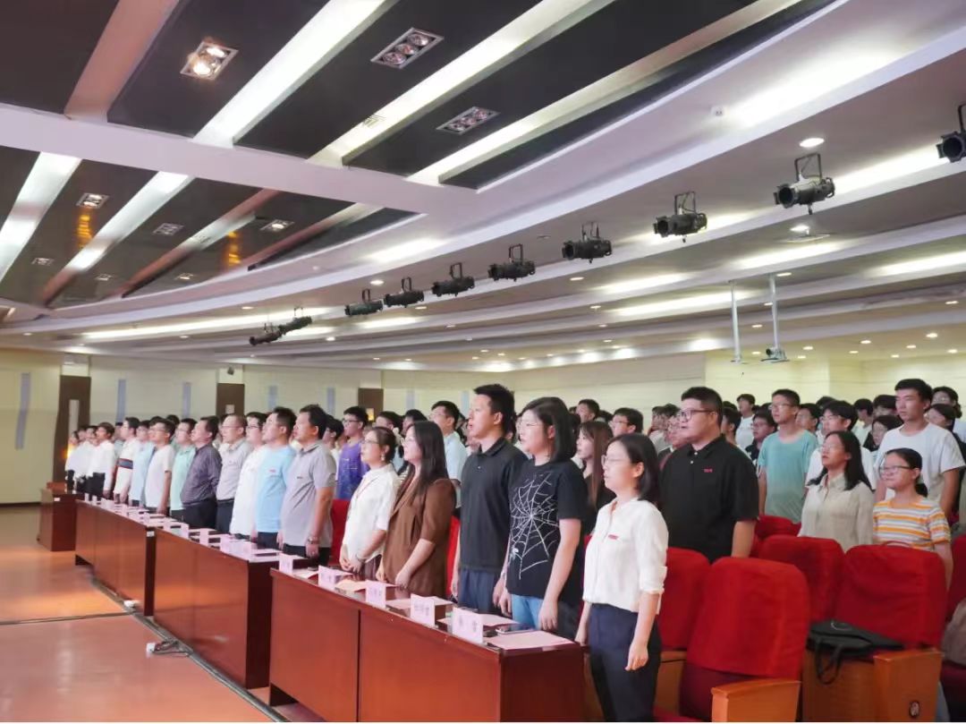 典礼最后,学院领导为新生代表佩戴校徽,全体新生郑重地为自己佩戴长安大学校徽,开启属于能电学子的逐梦之旅,伴随着慷慨激昂的《长安大学之歌》,开学典礼落下帷幕。