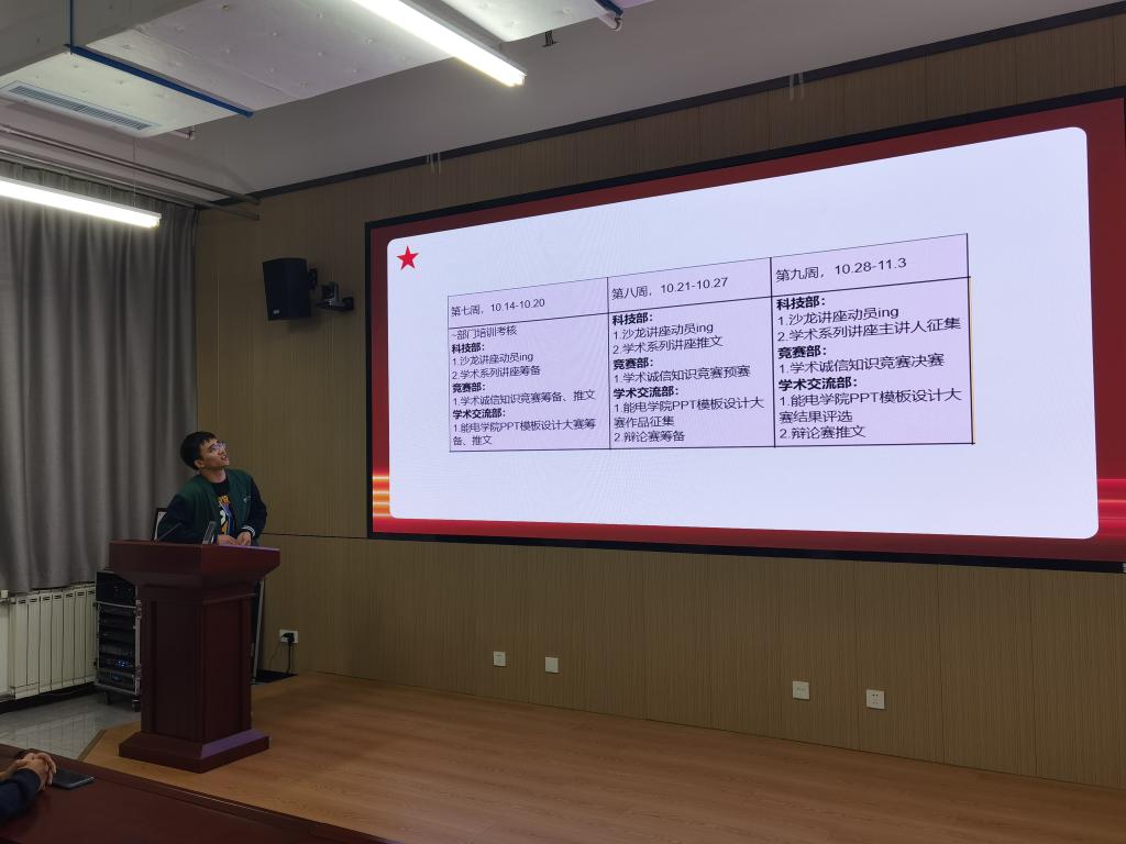 竞赛部、科技部、学术交流部为了加强科研活动的协作能力共同召开了部门例会。会议由主席团成员叶培主持,研会科技部、竞赛部、学术交流部全体成员参加,首先各部门负责人对志愿者开展了工作培训,讲解了部门具体职能和责任划分,针对学术系列讲座、学术诚信知识竞赛、taptap点点体育PPT模板设计大赛、taptap点点体育辩论赛等活动比赛进行了周密安排。
