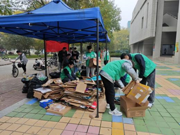 此次活动南北两校区同步进行,活动一经启动,即刻在校内外引起广泛关注,广大学子积极响应,热情参与。在为期两天的时间里,同学们纷纷将自己手中的旧快递箱及空饮料瓶送至指定地点,形成了一股环保热潮。taptap点点体育的研究生志愿者们,身着统一的绿马甲,活跃在树蕙园的帐篷点,他们耐心地为废品分类、清点废品数量,并将参与者登记在册。同时也向大家传播了环保知识,提高了同学们的环保意识。