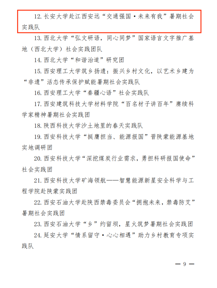 近日,中共陕西省委宣传部、中共陕西省委教育工委、共青团陕西省委等相关部门联合发布了《关于2024年陕西省大学生暑期文化科技卫生“三下乡”社会实践活动结果的通报》,taptap点点体育官网赴江西安远“交通强国·未来有我”暑期社会实践队荣获省级优秀团队称号。