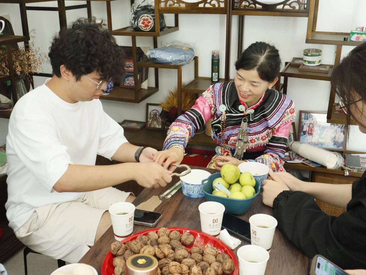 7月16日,长安大学“推普结同心 共赴滇乡梦”暑期社会实践团队深入云南大理白族自治州太邑彝族乡,探访国家级非物质文化遗产彝绣项目代表性传承人李丽香。在其工作室中,师生一行受到热情接待,通过沉浸式学习彝绣技艺、开展深度访谈,在一针一线中触摸非遗文脉,探索以普通话推广架设文化传播与乡村振兴的桥梁。