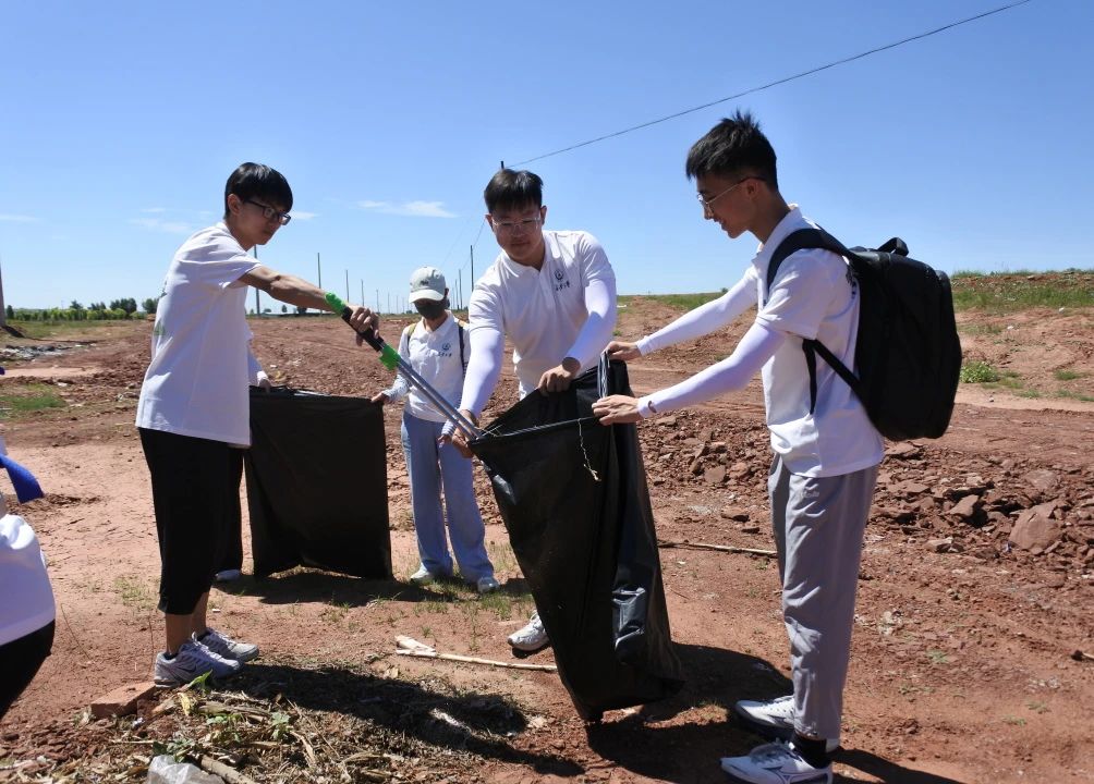 随后,为保障村镇藏香猪的养殖并助力当地的环保,实践队员化身“清洁工”“搬运工”深入村落主干道、房前屋后、河道沟渠及道路草丛开展环境整治志愿服务活动,大家目标明确,有的寻找着塑料瓶与垃圾碎屑,有的搬运装满垃圾袋子,用行动诠释绿色,用实践助力环保。他们拾起的不仅仅是一个个塑料瓶,更是鄂尔多斯的绿色明天。
