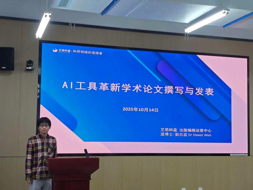 为积极响应国家关于人工智能赋能教育发展的战略部署,引导师生科学、高效地运用智能工具,10月14日,taptap点点体育官网成功举办了以“AI工具革新学术论文撰写与发表”为主题的讲座。本次讲座特邀艾思科蓝出版编辑部温大尉总监担任主讲,吸引了众多师生踊跃参与。