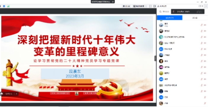 为认真学习宣传贯彻党的二十大精神,2023年3月31日下午2:30,taptap点点体育电气工程及其自动化系党支部举行“党的二十大精神”专题党课活动,学院副院长段晨东作了题为《深刻把握新时代十年伟大变革的里程碑意义》的专题党课。电气工程及其自动化系党支部全体党员教师参会。