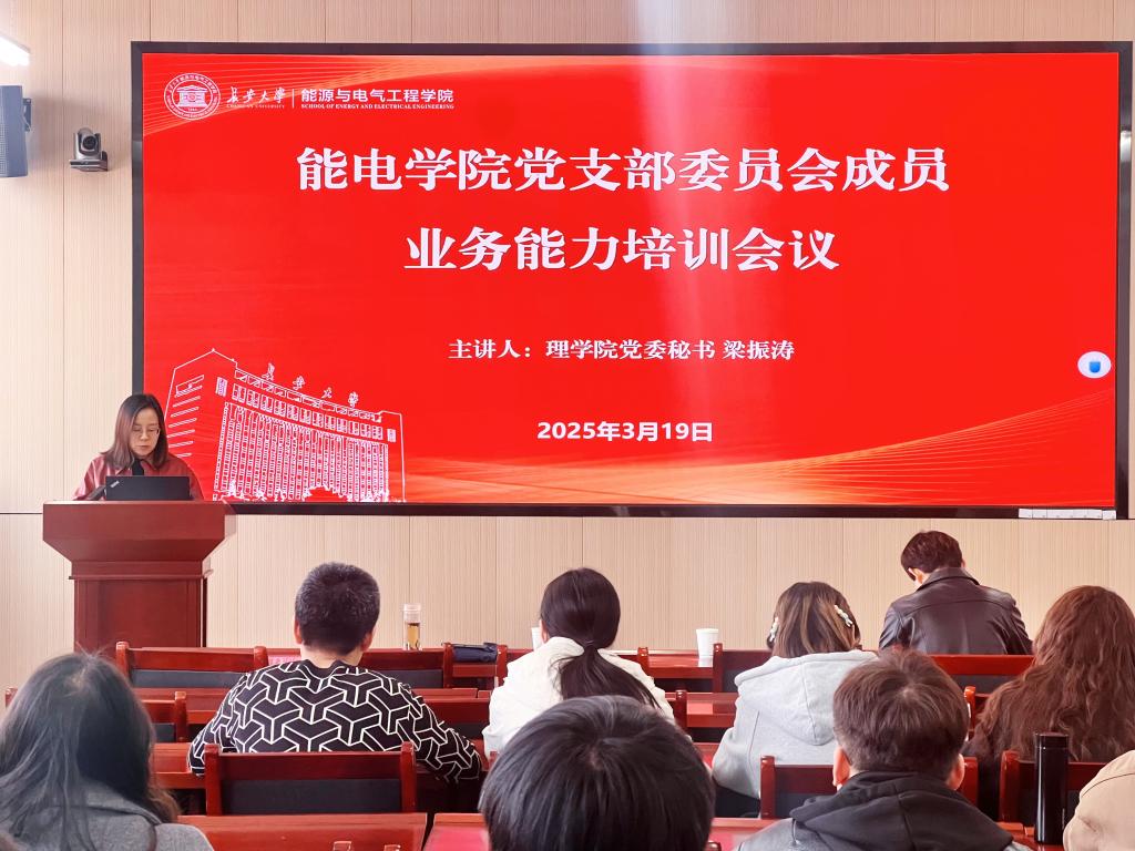 3月19日下午,学院在明德园扶轮大厦612报告厅举办党支部委员会成员业务能力培训会。邀请理学院党委秘书梁振涛老师担任主讲,党委书记王艳、全体党支部委员参会。会议由学院党委副书记、副院长、纪委书记倪凤英主持。