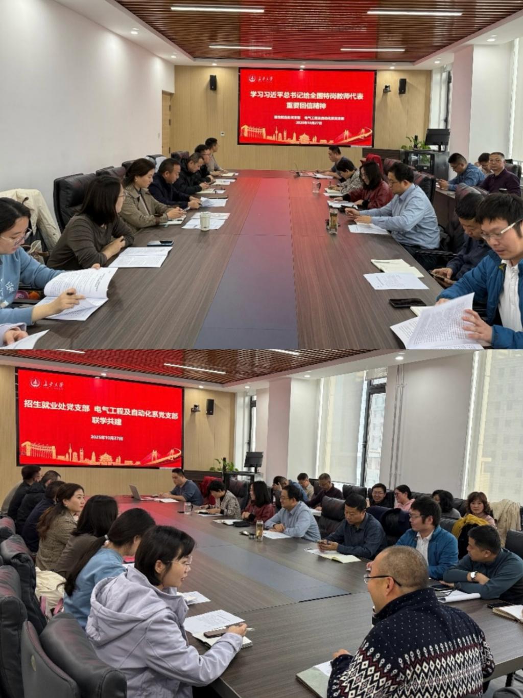 此次联学共建活动通过党建+业务”相融合,加深了学院与机关的交流互动,为电气工程专业人才培养和学校招生就业政策的优化提供了有力支撑。党员们纷纷表示将以此次活动为契机,把习近平总书记给全国特岗教师代表重要回信精神和党的二十届四中全会精神切实融入到日常的教学、科研和招生就业工作中去,为校院事业的综合改革和高质量发展贡献长大力量!